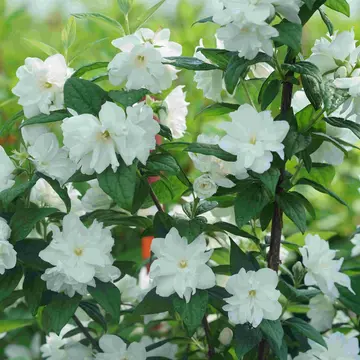 Illuminati® Arch is a real eyecatcher in late spring with its abundant big white flowers that are wonderfully fragrant. The flowers contrast beautfully with the handsome, rugged foliage that keeps its deep green color all season long. Very hardy plant that is easy to maintain. Prefers a sunny or semi-shaded spot. Height x width : 60-90 x 40-60 cm. Prune to shape after flowering. Frost resistant to -30°C.